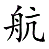 船行;航行 [navigate]。今飞机、飞船等飞行器在空中飞行也称航。如:航空;宇航;航业(船舶往来一港口输送货物或旅客的营业)