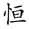 (会意。金文,从心,从月,从二。“二”,表示天地。本义:永久,永恒)
