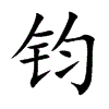 (形声。从金,匀声。本义:古代重量单位。三十斤为一钧)