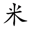 (象形,甲骨文字形。象米粒琐碎纵横之状。“米”是汉字的一个部首,从“米”的字与米、粮有关。本义:谷物和其他植物子实去壳后的子实)