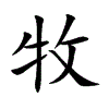 (会意。甲骨文字形。从牛,从攴( pū),表示手拿棍棒牧牛(羊)。本义:放牧牲畜)