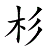 汉字五行:木,吉凶寓意:吉 是否常用字:是 姓名学:非姓氏 拼音:shān、shā 简体总笔画:7 部首:木 繁体:杉 繁体总笔画:7 康熙字典笔画:7 流行度: 知名度: