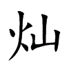 (形声。从火,粲声。本义:灿烂,光彩鲜明耀眼)