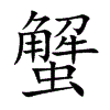 汉字五行:木,吉凶寓意:吉 是否常用字:否 姓名学:非姓氏,多用男性 拼音:xiè 简体总笔画:19 部首:虫 繁体:蟹 繁体总笔画:19 康熙字典笔画:19 五行:金 姓名学中不常用字 流行度: 知名度: