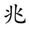 古代设于四郊的祭坛 [altar]。如:兆日(设置祀日神坛);兆位(四郊祭坛的处所);兆祀(设坛祭祀);兆守(监守祭坛的职司)