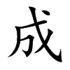五行为金,本义为完成,成就。在人名中引申为成功、成为、具备等义。如常见成语“有志者事竟成”、“成人之美”等都有成功、促成之义。